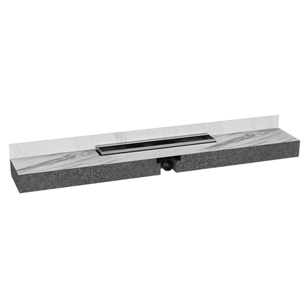 Grondaia per docce "PRIMUS-LINE", integrata in un elemento di installazione EPS, con corpo di scarico e cornice inox. Superficie impermeabile con vello e pendenza integrata, quindi direttamente piastrellabile. Lunghezza adattabile individualmente. Per installazione a parete. Dispositivo antiodore "Primus blue" - il sifone funziona anche senza acqua! Con protezione cantiere, ma senza copertura.