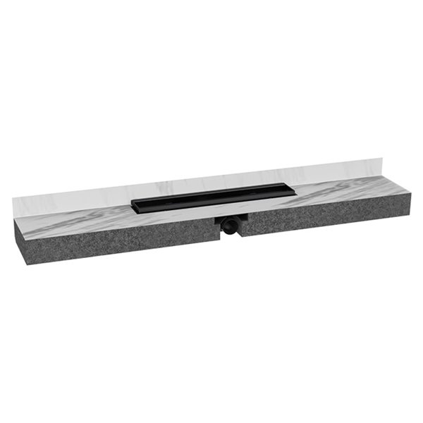 Grondaia per docce "Primus blue", integrata in un elemento di installazione EPS, con corpo di scarico e cornice inox (black matt PVD-coated stainless steel frame). Superficie impermeabile con vello e pendenza integrata, quindi direttamente piastrellabile. Lunghezza adattabile individualmente. Per installazione a parete. Dispositivo antiodore "Primus blue" - il sifone funziona anche senza acqua! Con protezione cantiere, ma senza copertura.