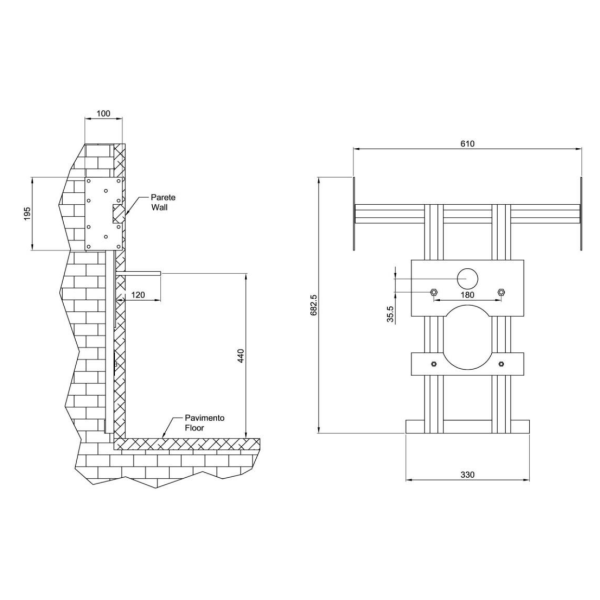 Struttura di sostegno per vaso sospeso serie EASY, modello 15105/2-CG di Idral, progettata appositamente per il fissaggio su pareti in cartongesso. Questa struttura offre un supporto robusto grazie ai 2 punti di fissaggio, garantendo la massima stabilità. Compatibile con i modelli di vasi sospesi Idral 10262-10266, è la soluzione ideale per installazioni rapide e sicure in ambienti moderni e funzionali.