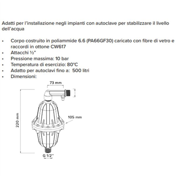 Alimentatore d'aria 1/2" per Autoclavi fino 500L Effetto Venturi 10b LUFT