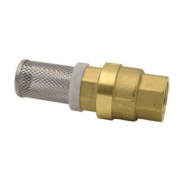 Valvola di fondo per gasolio e nafta 3/4" a passaggio totale in ottone con guarnizione fluoroelastomero e filtro in acciaio inox. Pressione esercizio min 0.05 bar, apertura min 0.025 bar. Temperatura -20°/+135°C. Installazione universale. PN40.