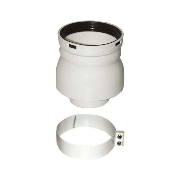 Manicotto femmina-femmina in alluminio estruso verniciato bianco, diametro 100mm, lunghezza 135mm. Completo di guarnizione. Per collegamento canne fumarie e condotti. Resistente e durevole.