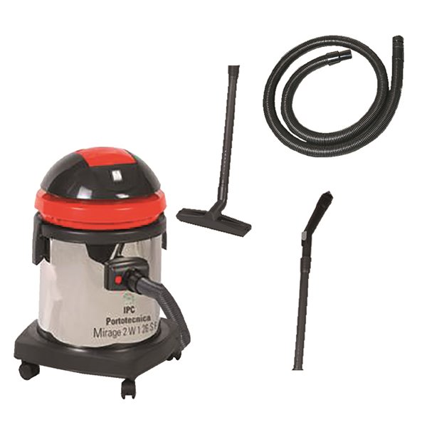 Dotazione: spazzola per polveri, spazzola per liquidi, lancia piatta, bocchetta, pennello e tubi di servizio.