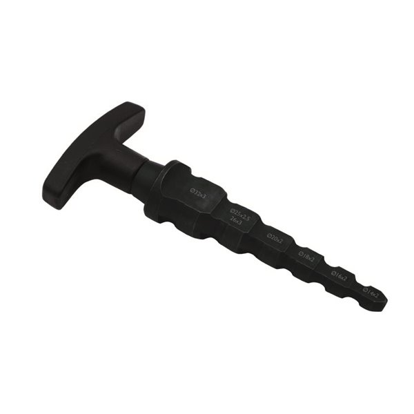 Realizzato in acciaio di alta qualità, questo svasatore garantisce robustezza e una lunga durata nel tempo, resistendo a sollecitazioni e usura anche dopo numerosi interventi. La forma ergonomica e l’impugnatura studiata con cura consentono di effettuare la smussatura in maniera agevole, riducendo lo sforzo necessario e assicurando la massima precisione. Il risultato è un bordo del tubo perfettamente modellato, ideale per facilitare l’innesto dei raccordi e migliorare la tenuta dell’impianto.