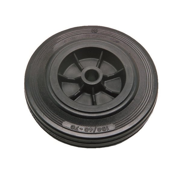 La ruota gommata con diametro di 150 mm è un ricambio progettato per carrelli dotati di due ruote. Caratterizzata da una costruzione robusta e affidabile, questa ruota è ideale per sostituire parti usurati o danneggiate e ripristinare la funzionalità del carrello.