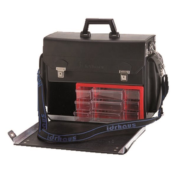 La borsa nera per assistenza tecnica di Idrobay è realizzata in vero cuoio di alta qualità con uno spessore di 2 mm, rivestita completamente in laminato plastico da 2 mm per una maggiore resistenza e durabilità. Ideale per i professionisti, questa borsa è progettata per facilitare il trasporto e l'organizzazione degli utensili durante gli interventi tecnici.