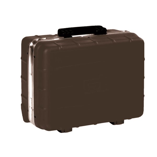 Valigia in PP ad alto spessore stampata ad iniezione, resistente alle sostanze corrosive, agli urti, alle basse e alte temperature, dotata di maniglia di trasporto, due pannelli portautensili con passanti, fondo con divisori rimovibili e regolabili, chiusura con clipper laterali con chiave.