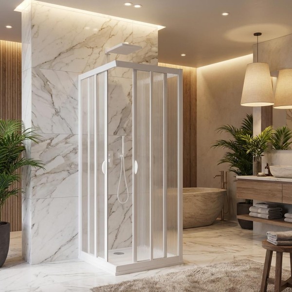 Angolo Doccia con Apertura Scorrevole Laterale H190 cm - Estensibile Reversibile Riducibile - PVC Bianco