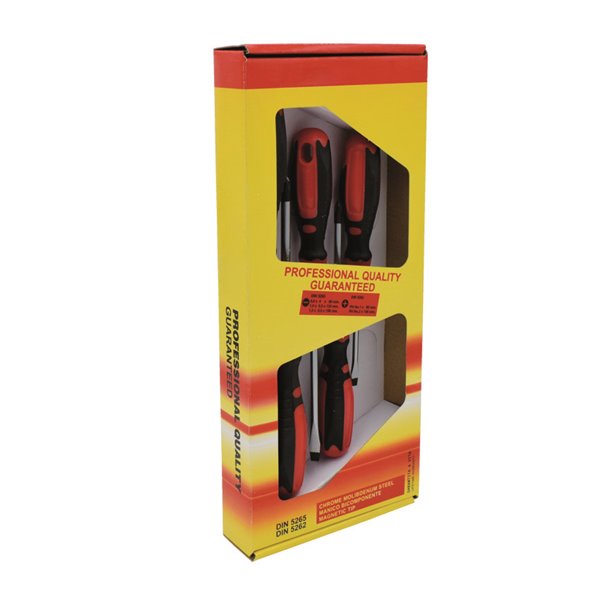 Con la Serie di 5 Giraviti Taglio, hai a disposizione un set completo per affrontare ogni tipo di lavoro di precisione. Questa serie include cinque giraviti di dimensioni diverse: 4x80 mm, 5,5x125 mm e 6,5x150 mm per soddisfare le esigenze di avvitamento di varie dimensioni. Inoltre, la serie include due giraviti a croce PH, uno di dimensioni 1x80 mm e l'altro 2x100 mm, per affrontare efficacemente viti a croce di diversi calibri. Costruiti con materiali di alta qualità e un design ergonomico per una presa confortevole, questi giraviti sono gli strumenti ideali per affrontare qualsiasi sfida di lavoro manuale con facilità e precisione.