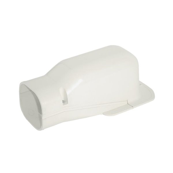La curva a muro con dimensioni di 90x65 millimetri è progettata per consentire una deviazione angolare all'interno di un sistema di canalizzazione o di tubi, mantenendo il flusso del materiale lungo la superficie murale.