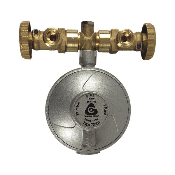 Regolatore/inversore a doppio stadio con valvola di sicurezza per lo scarico delle sovrapressioni è progettato per fornire un controllo avanzato e sicuro del gas GPL, ideale per installazioni esterne.