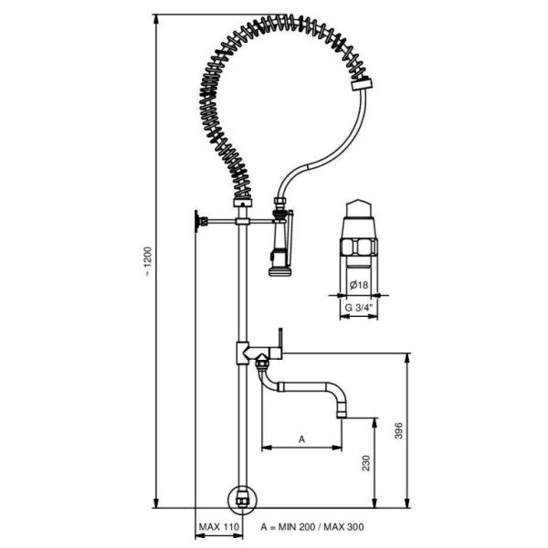 Il Gruppo doccia prelavaggio stoviglie modello 9420 di Idral è ideale per l’installazione su rubinetti o miscelatori da piano, con un’altezza di 1200 mm. Caratterizzato da un rubinetto a dischi ceramici, offre una bocca di erogazione girevole a “S” telescopica, regolabile tra 200 e 300 mm, realizzata in tubo ottone di diametro 18 mm. La molla in acciaio inox garantisce durata e resistenza, mentre il kit di fissaggio a muro permette un’installazione stabile e sicura.