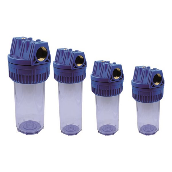 Il vaso trasparente in policarbonato atossico consente un facile controllo visivo dello stato della cartuccia, mentre il corpo è realizzato in polipropilene (PP) rinforzato con inserti in ottone, per una maggiore affidabilità e durata nel tempo. La tenuta è assicurata da un O-ring che previene ogni perdita.