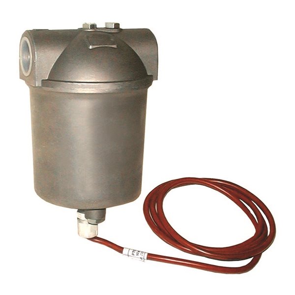 Filtro gasolio 3/8" 1 via con corpo in alluminio e cartuccia filtrante in acciaio inox 50–100 micron. Portata 60 l/h, vaschetta in nylon, pressione massima 1 bar. Ideale per proteggere gli ugelli del bruciatore da impurità e sospensioni solide.