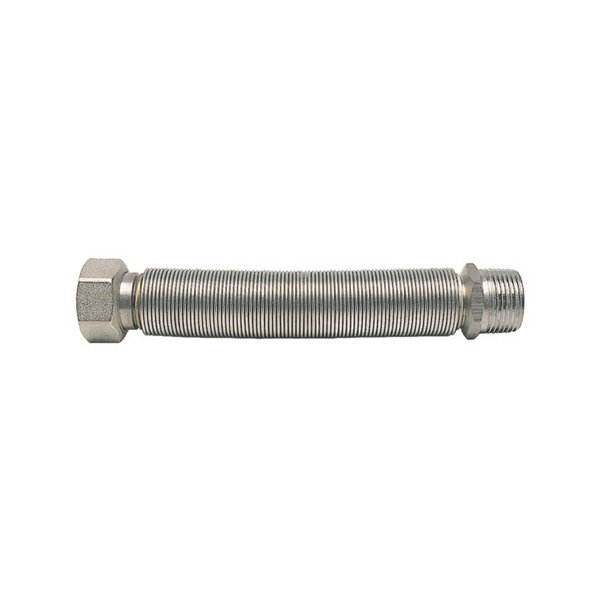 Giunto estensibile per acqua 1/2"x3/4" MF – 220–420 mm, realizzato in acciaio inox AISI 316L con dado in ottone nichelato e guarnizioni NBR. Flessibile, resistente e ideale per impianti idrici e termici, con pressione fino a 5,5 bar.