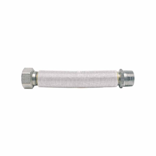 Giunto estensibile per acqua 1/2"x3/4" MF – 220–420 mm, realizzato in acciaio inox AISI 316L con dado in ottone nichelato e guarnizioni NBR. Flessibile, resistente e ideale per impianti idrici e termici, con pressione fino a 5,5 bar.