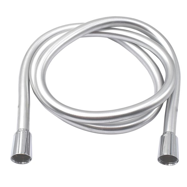 Flessibile doccia da 200 cm in PVC rinforzato con sezione quadrata argento, terminali in ottone cromato e attacchi Ø 1/2” femmina con sistema antitorsione. Ideale per installazioni resistenti e durature in ambienti bagno domestici o professionali.