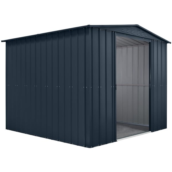 CASETTA DA GIARDINO 308 x 248 cm - struttura con telaio interno triplo, con sistema angolare brevettato - In lamiera color antracite - vernice epossidica garantita 15 anni - Con porta doppia scorrevole - resistenza al carico neve: 100 kg/m² - Massimo ingombro compreso tetto: 308 x 248 x H 203 cm - Misure perimetro di base: 296 x 238 cm - Misure interne: 285 x 224 cm - Misure porta: 105 x 170 cm