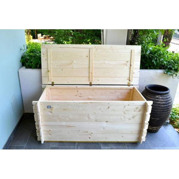 La cassapanca Giove di Alce unisce praticità e stile in un elegante mobile. Con dimensioni di 130x60xh56 cm, questo pezzo è ideale per organizzare e decorare il tuo spazio con un tocco di classe. Realizzata in perlina di abete grezzo, presenta una tipologia costruttiva blockhouse e una spessa parete da 16mm, assicurando robustezza e durabilità nel tempo. L'apertura a battente con compasso rende l'utilizzo facile e confortevole. Le pareti rinforzate in abete naturale offrono ulteriore stabilità e resistenza.