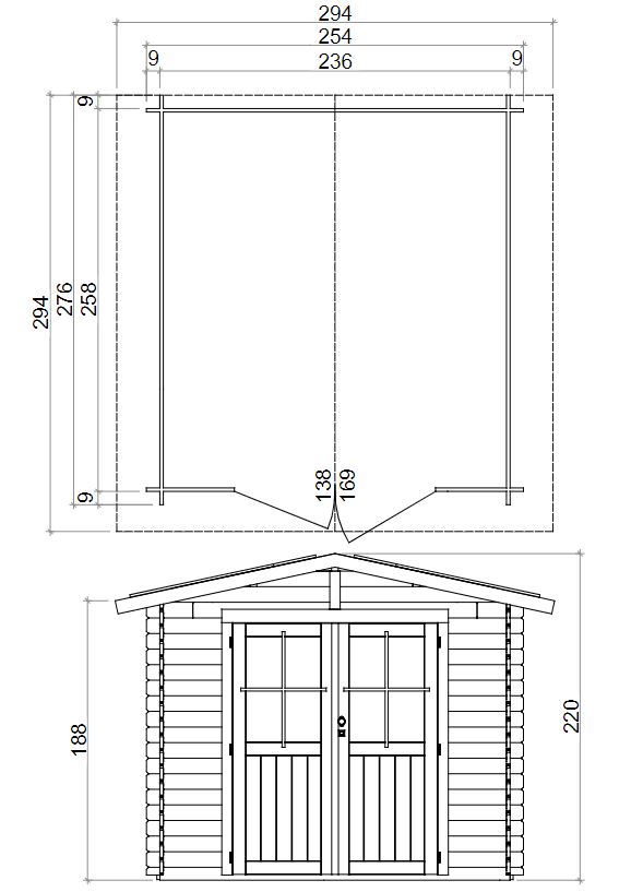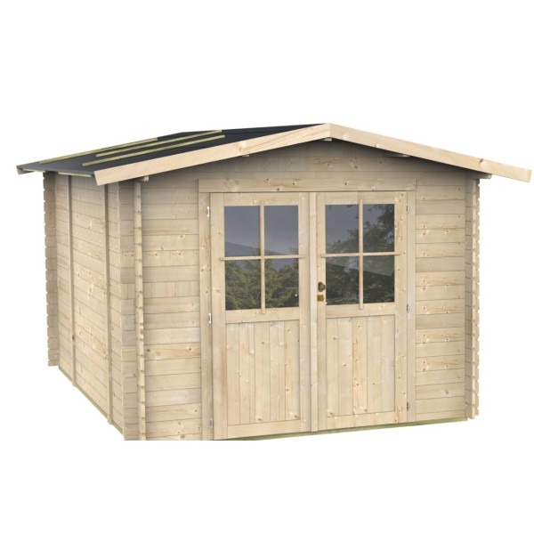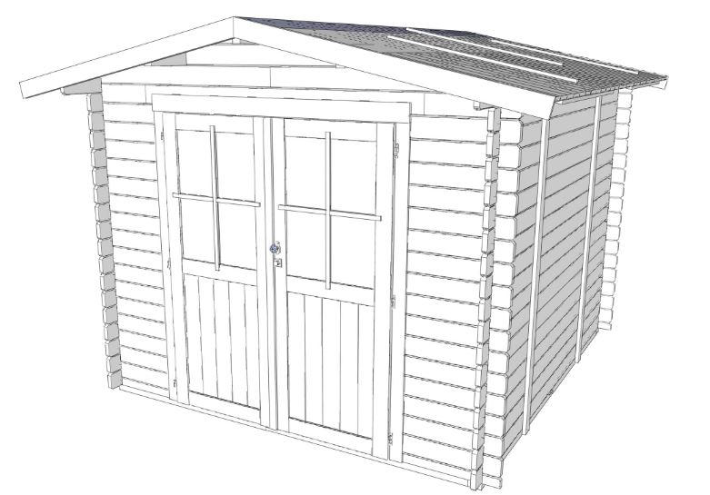 Dotata di una porta doppia a battente, completa di una finestra fissa in plexiglass e un telaio in Finger Joint, offre un ingresso luminoso e accogliente. Il tetto è costituito da falde in perlinato di abete da 16mm, protette da una copertura in guaina ardesiata grigia da 3mm, garantendo una protezione affidabile dalle intemperie.