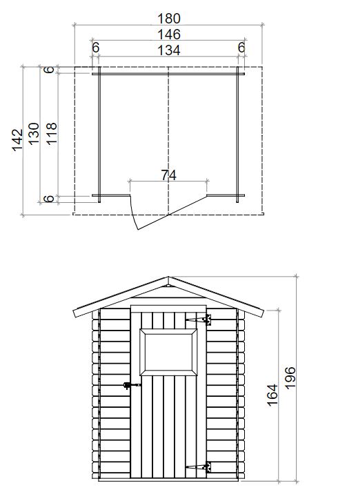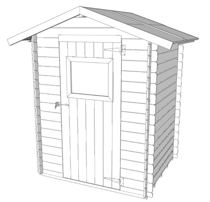 L'ingresso è caratterizzato da una porta singola finestrata a battente, che aggiunge luminosità e charme all'ambiente interno della casetta. Il tetto, con le sue falde in pannello OSB3 spessore 12mm, è protetto da una copertura in guaina ardesiata grigia da 3mm, garantendo una perfetta protezione dalle intemperie.