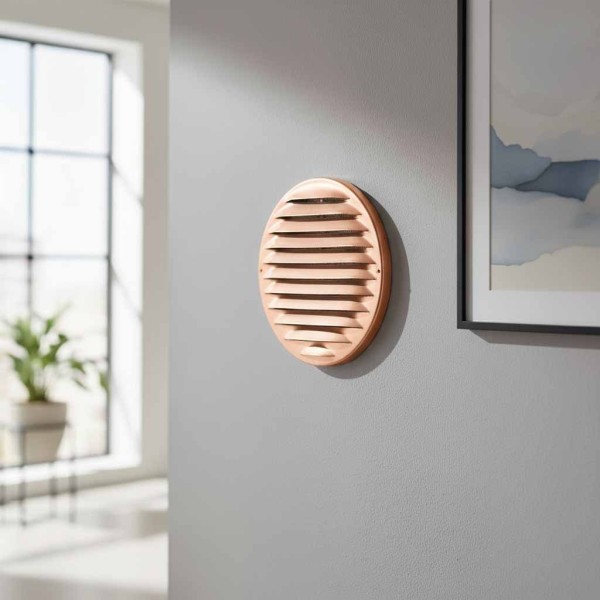 La griglia tonda Idrobay in rame Ø147 combina prestazioni tecniche, estetica e durata, rendendola una soluzione ideale per impianti di ventilazione e aerazione in contesti residenziali e architettonici di alto livello.