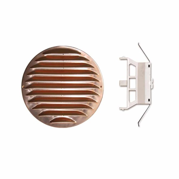 Griglia tonda in rame foro 80÷125 Ø147 con molla e rete, perfetta per impianti di ventilazione e aerazione in ambienti civili, domestici o di pregio architettonico. Realizzata in rame naturale di alta qualità, unisce resistenza e design raffinato, mantenendo nel tempo la caratteristica patina protettiva del materiale.