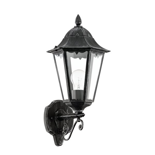 NAVEDO - Applique - E27 1X60W - Struttura in alluminio fuso / finitura nero, argento patinato; Diffusore in vetro / finitura chiaro; Dotazione per installazione angolare ; IP44;