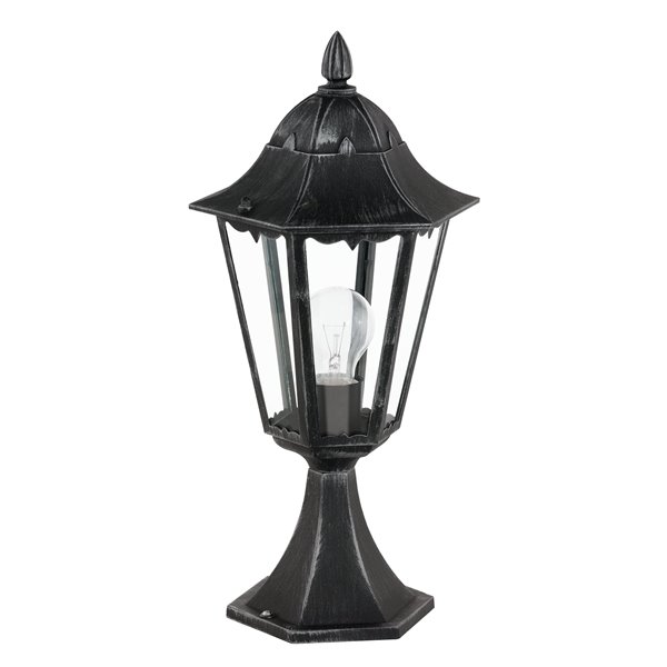 NAVEDO - Paletti basso - E27 1X60W - Struttura in alluminio fuso / finitura nero, argento patinato; Diffusore in vetro / finitura chiaro; IP44;