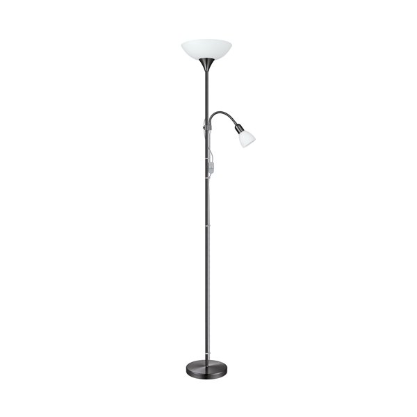 UP 2 - Piantana - E27 1X60W; E14-ILLU 1X18W - Struttura in acciaio / finitura nichel-nero; Diffusore in plastica, vetro / finitura bianco;