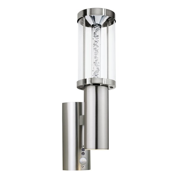 TRONO STICK - Applique - GU10-LED 1X2,8W 3000K inclusa; LED-MODUL 1X3,7W 3000K 330Lm inclusa - Struttura in acciaio inox / finitura acciaio inox; Diffusore in vetro, plastica / finitura chiaro; Dotazione per installazione angolare ; IP44;