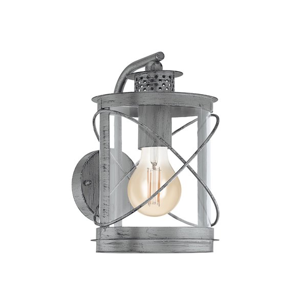 HILBURN 1 - Applique - E27 1X60W - Struttura in acciaio zincato / finitura argento anticato; Diffusore in plastica / finitura trasparente; Dotazione per installazione angolare ; IP44;