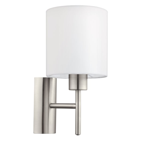 PASTERI - Applique - E27 1X60W - Struttura in acciaio / finitura nichel opaco; Diffusore in tessuto / finitura bianco;