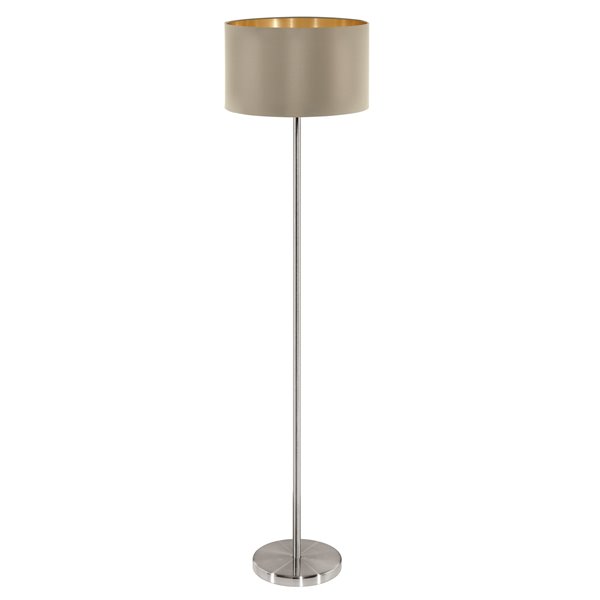 MASERLO - Piantana - E27 1X60W - Struttura in acciaio / finitura nichel opaco; Diffusore in tessuto / finitura tortora, oro;