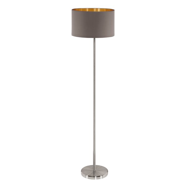 MASERLO - Piantana - E27 1X60W - Struttura in acciaio / finitura nichel opaco; Diffusore in tessuto / finitura cappuccino, oro;