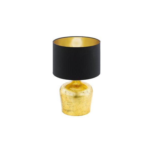 MANALBA - Lampada da tavolo - E27 1X60W - Struttura in acciaio / finitura oro; Diffusore in tessuto / finitura nero, oro;