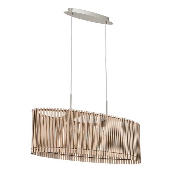 SENDERO - Sospensione - E27 2X60W - Struttura in acciaio / finitura nichel opaco; Diffusore in legno / finitura acero;