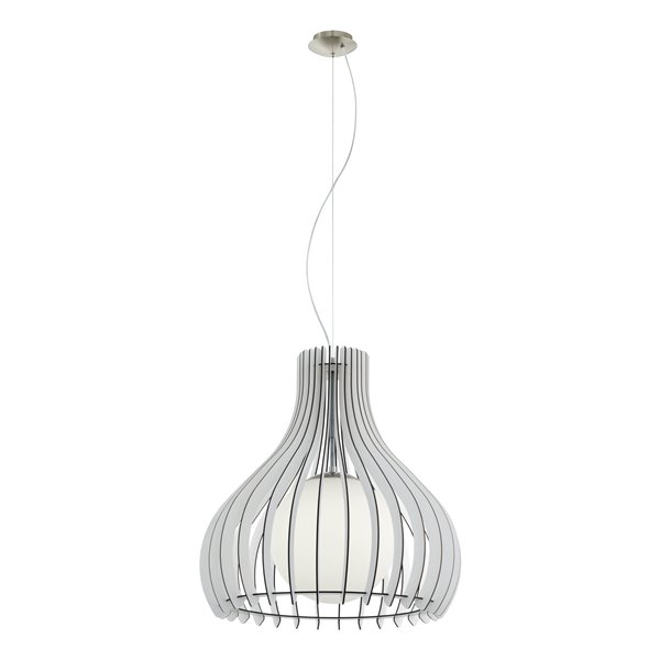 TINDORI - Sospensione - E27 1X60W - Struttura in acciaio / finitura nichel opaco; Diffusore in legno, vetro / finitura bianco;