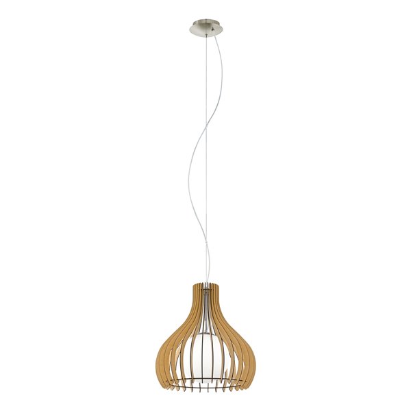 TINDORI - Sospensione - E27 1X60W - Struttura in acciaio / finitura nichel opaco; Diffusore in legno, vetro / finitura acero, bianco;
