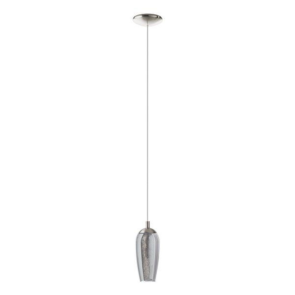 FARSALA - Sospensione - G9-LED 1X3W inclusa - Struttura in acciaio / finitura nichel opaco; Diffusore in vetro fumé, granella / finitura nero-trasparente, chiaro;