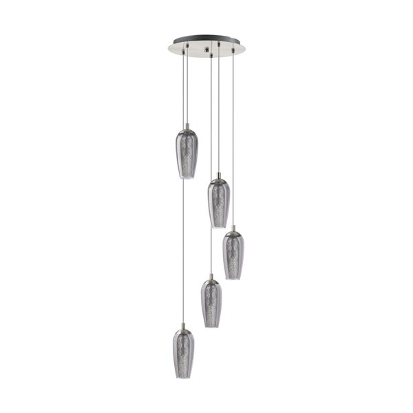 FARSALA - Sospensione - G9-LED 5X3W inclusa - Struttura in acciaio / finitura nichel opaco; Diffusore in vetro fumé, granella / finitura nero-trasparente, chiaro;