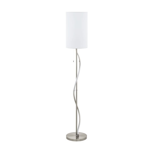 ESPARTAL - Piantana - E27 1X60W; LED 11,8W 3000K 1650Lm inclusa - Struttura in metallo / finitura nichel opaco, alluminio; Diffusore in tessuto / finitura bianco;