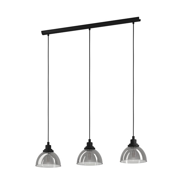 BELESER - Sospensione - E27 3X60W - Struttura in acciaio / finitura nero; Diffusore in vetro vaporizzato / finitura nero trasparente;