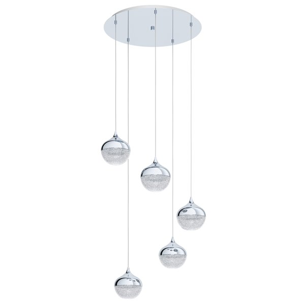 MIOGLIA 1 - Sospensione - E14 5X25W - Struttura in acciaio / finitura cromo; Diffusore in plastica / finitura graniglia bianca, chiaro;