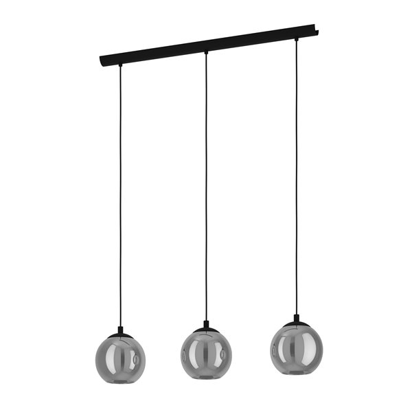 ARISCANI - Sospensione - E27 3X40W - Struttura in acciaio / finitura nero; Diffusore in vetro vaporizzato / finitura nero trasparente;