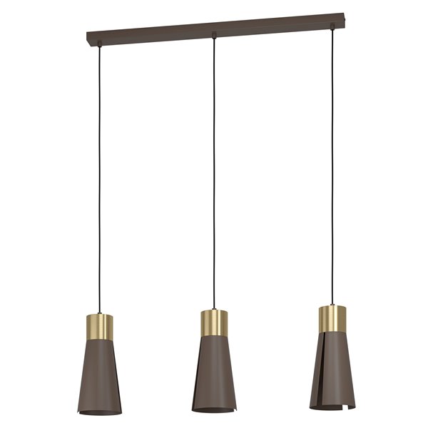 LOSALOMAS - Sospensione - GU10-LED 3X4,5W inclusa - Struttura in acciaio / finitura color moka, ottone spazzolato;
