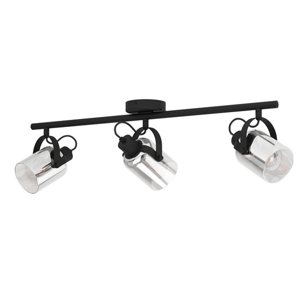 BERREGAS - Faretti - E27 3X40W - Struttura in acciaio / finitura nero, cromo; Diffusore in vetro vaporizzato / finitura nero trasparente;
