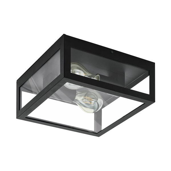 AMEZOLA - Plafo/applique - E27 2X28W - Struttura in acciaio / finitura nero; Diffusore in vetro / finitura chiaro; IP44;