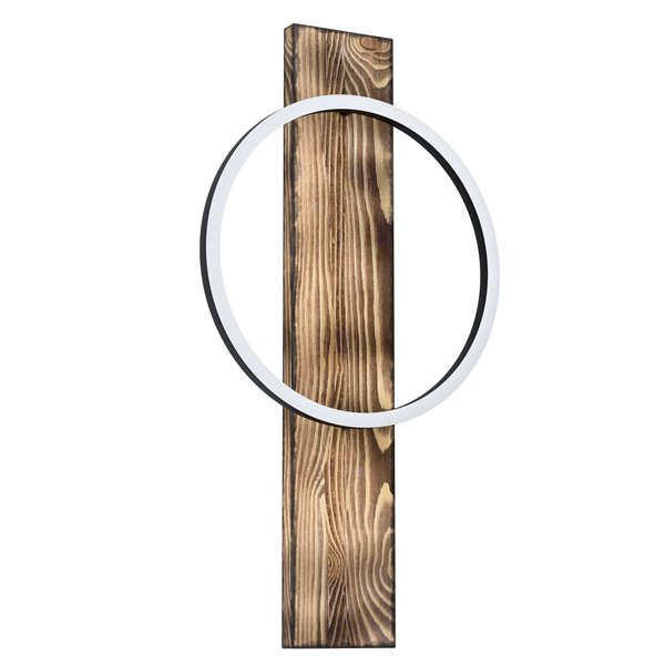 BOYAL - Applique - LED 1X12W 3000K 1700Lm inclusa - Struttura in metallo e legno / finitura nero, marrone rustico; Diffusore in plastica / finitura bianco;