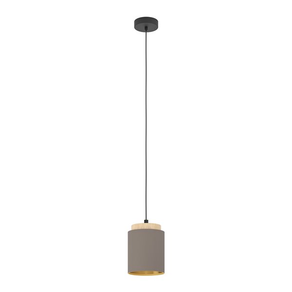 ALBARIZA - Sospensione - E27 1X40W - Struttura in metallo e legno / finitura nero, marrone; Diffusore in tessuto / finitura cappuccino, oro;